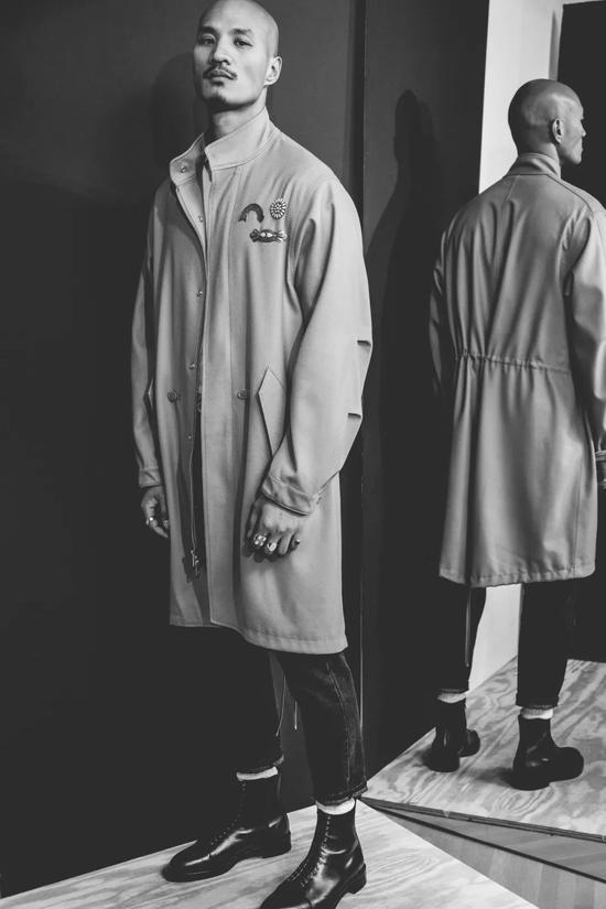 于光头,寸头型男来说,假如你没有偏瘦痞气的优势,那么宽松的版型就和出众的质感一样,能够弱化头部没有遮掩的感觉,不逼仄的宽适空间感带来了足够自然舒适的风格状态。