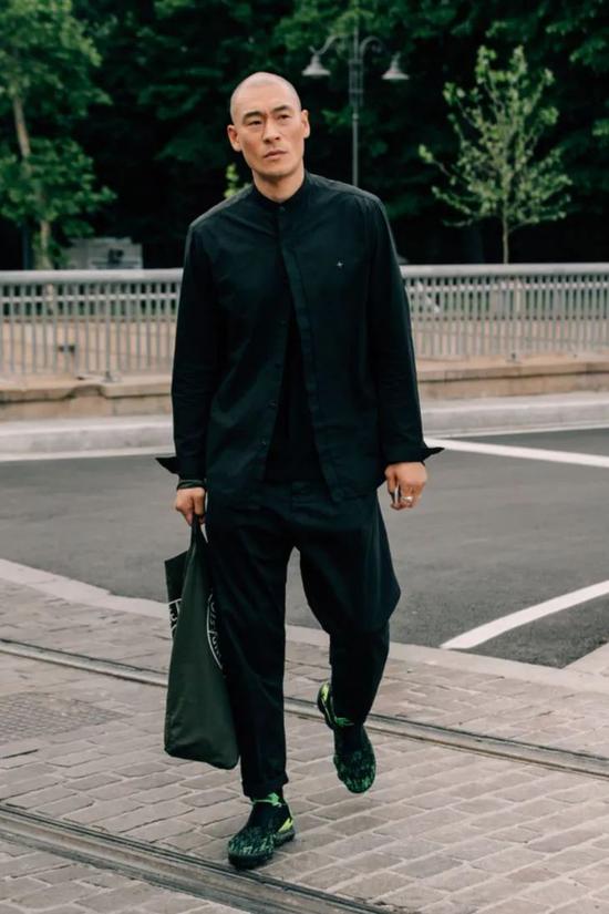 但这里有一点需要注意,光头,寸头型男穿极简风时候,不太适宜浅色的同色系穿法,如 All White。