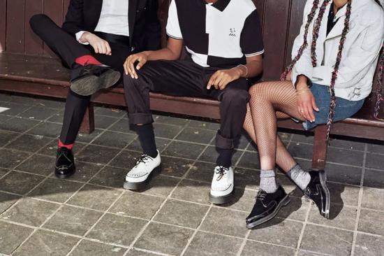 在这里如此年轻的创意总监带领之下,George Cox 展开了与各种品牌的联名合作,在原本品牌摇滚美学内核的基础上,又拓展出了多元的风格理念,从百年老鞋的定位中,成功进入到了年轻潮流领域,再次引领风尚。
