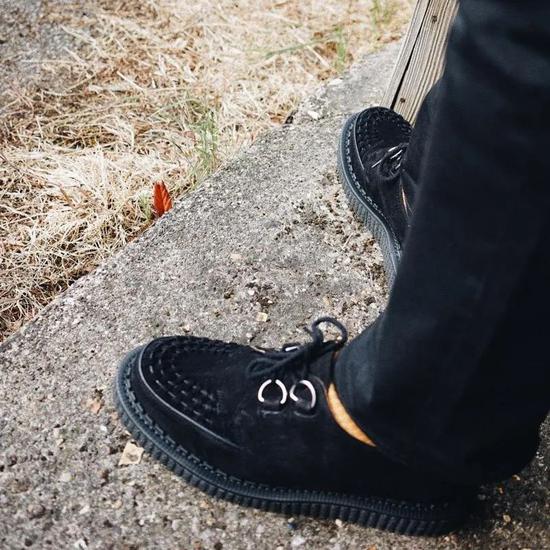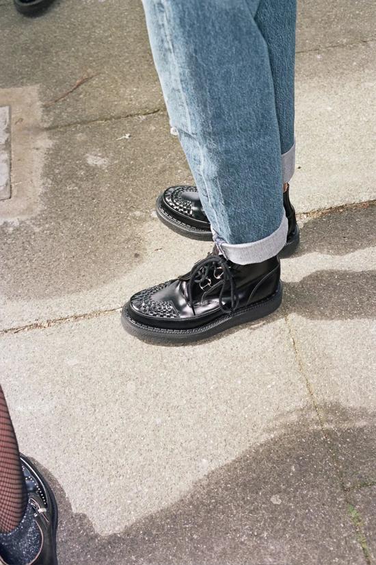 很显然,在后世的众多“Creeper”款式中,往往只是继承了厚底的特征,却忘了它更具特色亮点的尖头。