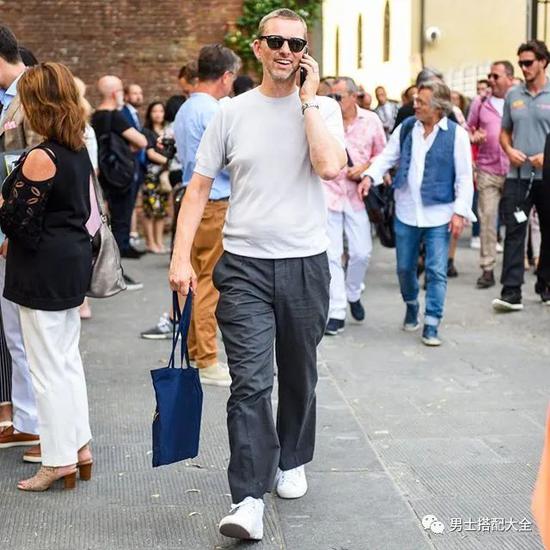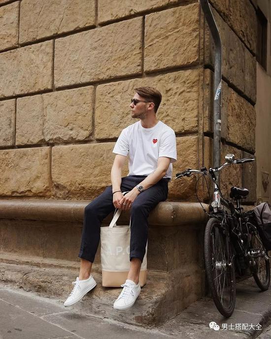 已经知道怎么选择后,我们来聊聊搭配又有哪些好办法呢?如果觉得纯白tee太单调,我们还可以选择有图案的白tee来玩花样。