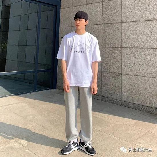 大家应该都知道街头风时尚不断被推崇吧?因此,一件oversized白T恤配卫裤就可以达到这个造型目的。