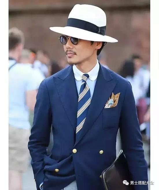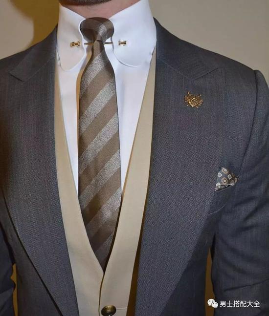 一些钟情于复古时髦的人士,选用别针款的领针搭配来弱化商务感,玩味十足。