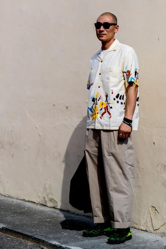 可你仔细瞧瞧便也能发现,有的光头,寸头穿起印花来也是毫不费劲,并不油腻的,这跟你的气质和身型都有关。