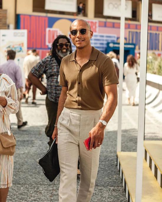 特别是针织材质一类的短袖,如 Polo 衫,质感格外充实,尤其适合优雅成熟的男人,只要选择一条得体的西裤,就不再流于俗套。