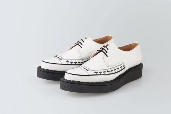 在这里如此年轻的创意总监带领之下,George Cox 展开了与各种品牌的联名合作,在原本品牌摇滚美学内核的基础上,又拓展出了多元的风格理念,从百年老鞋的定位中,成功进入到了年轻潮流领域,再次引领风尚。