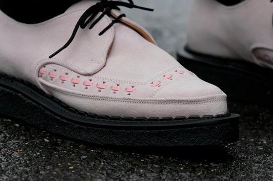 很显然,在后世的众多“Creeper”款式中,往往只是继承了厚底的特征,却忘了它更具特色亮点的尖头。
