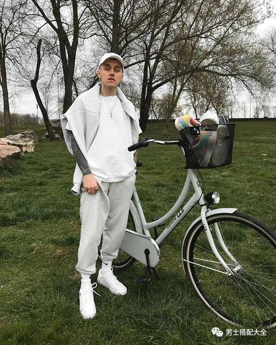 大家应该都知道街头风时尚不断被推崇吧?因此,一件oversized白T恤配卫裤就可以达到这个造型目的。