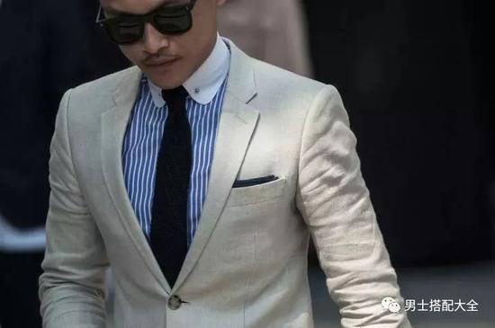 选择异色领的男士,在搭配上一定要注意协调,否则一不留神就会被归为没品位一类。